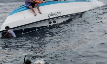 A boat carrying 16 people has capsized in rough waters off Indonesia’s resort island…