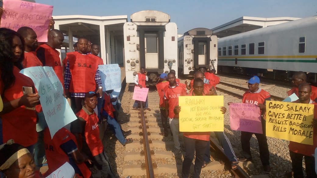 Railway workers on Thursday staged a protest against poor welfare in Abuja.They displayed placards…