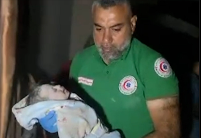 A baby has been pulled out alive from the rubble of a family home…