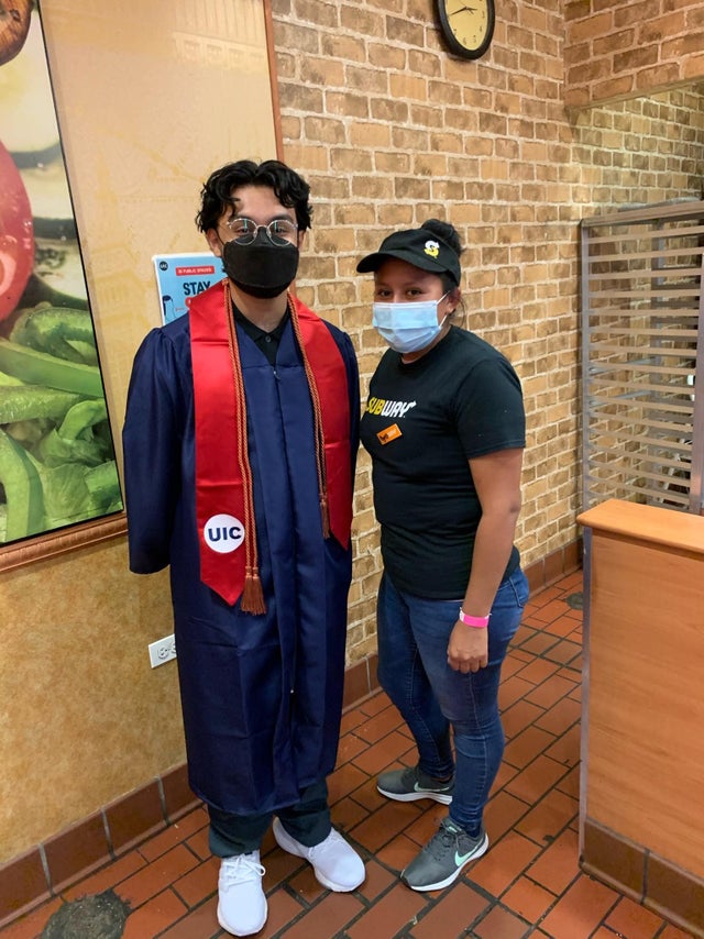 “My favorite graduation photo that I took. This woman at my campus’ Subway kept me fed for 4 years.”
