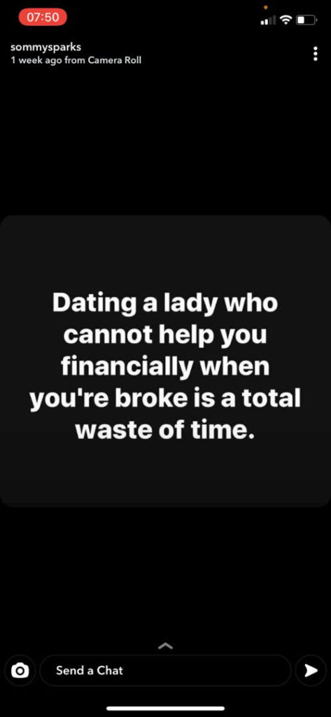 In a Snapchat post, the former boyfriend of Regina Daniels said that he can’t date women who can not help him during a difficult financial situation.