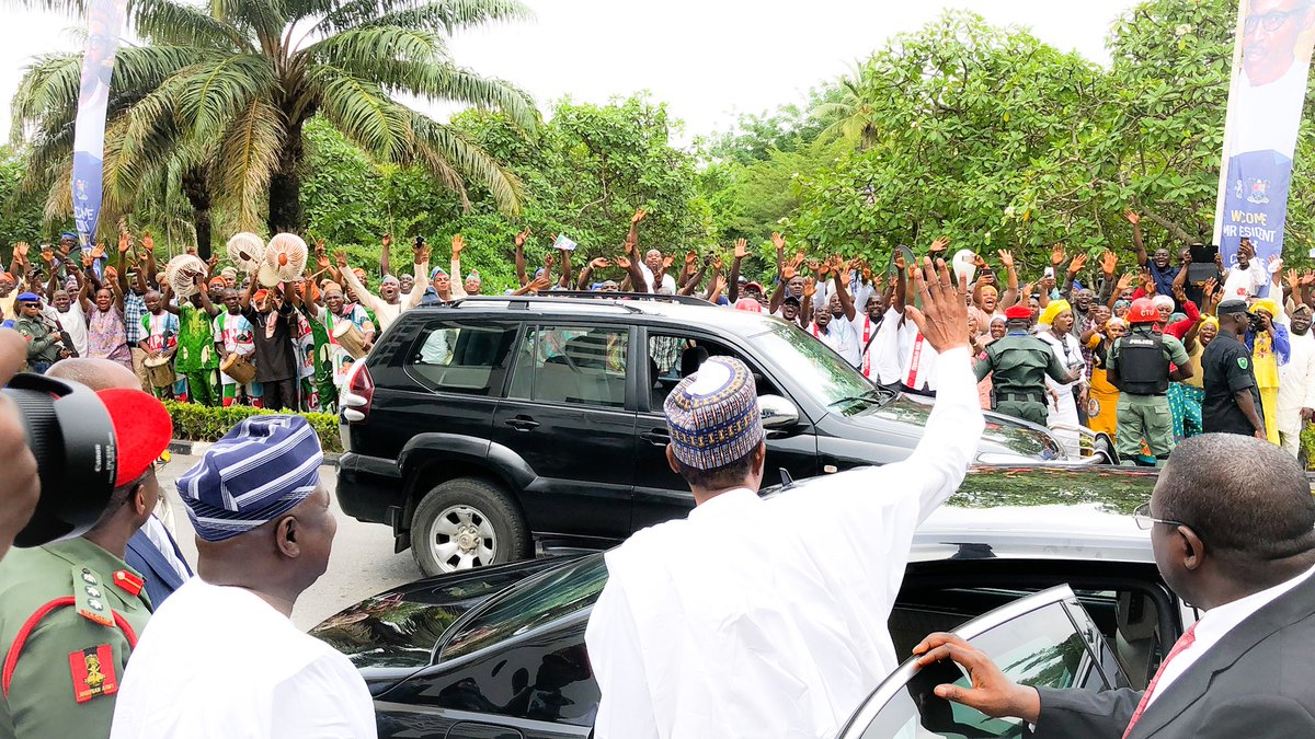 President Muhammadu Buhari was given a warm welcome by residents when he arrived Lagos…